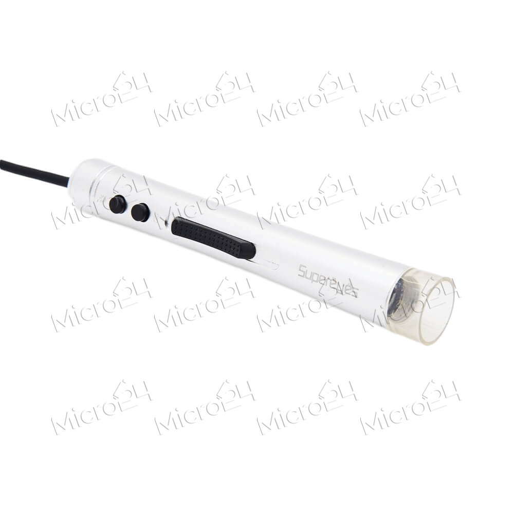 Supereyes B010 — многофункциональный микроскоп с кнопочной фокусировкой, плавной регулировкой кратности и видеодатчиком CMOS с разрешением матрицы 2 Мп. Диаметр устройства - 19 мм, длина составляет 125 мм, по внешнему виду напоминает шариковую ручку. Механические и оптические элементы сосредоточены в одном корпусе. Максимальное увеличение – 300х. Прибор оснащен регулируемой светодиодной подсветкой с автоматическим балансом яркости и белого цвета. Есть функция моментального снимка, записи видео, измерения дуги, периметра и расстояния.